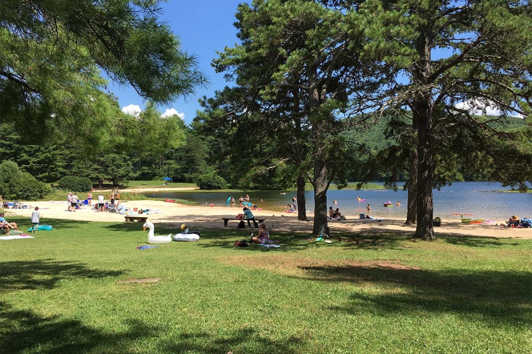 The recreation area is accessible via paved WV-14 and is 30 miles from Interstate 64 at White Sulphur Springs, West Virginia. The boat rental is near the public boat ramp in the beach and day-use area.