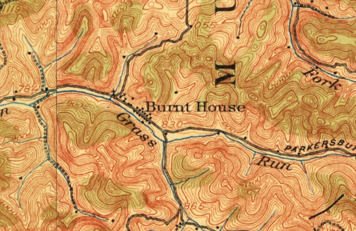 Burnt House, WV, shown in 1906 Map by WVExplorer | Aug 26, 2019 | 0 comments Burnt House, WV, appears along Grass Run, a tributary of the South Fork of the Hughes River, in a 1906 Topographic Map. Submit a Comment Cancel replyYour email address will not be published. Required fields are marked *Comment * Name * Email * Website Save my name, email, and website in this browser for the next time I comment. Δ