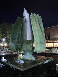 The fountain was formally dedicated on November 12, 1972, and was received positively by the community. Almost immediately, it became a popular gathering spot for students. In its early years, some students waded in the fountain’s reflecting pool. A few even conducted baptisms in it.