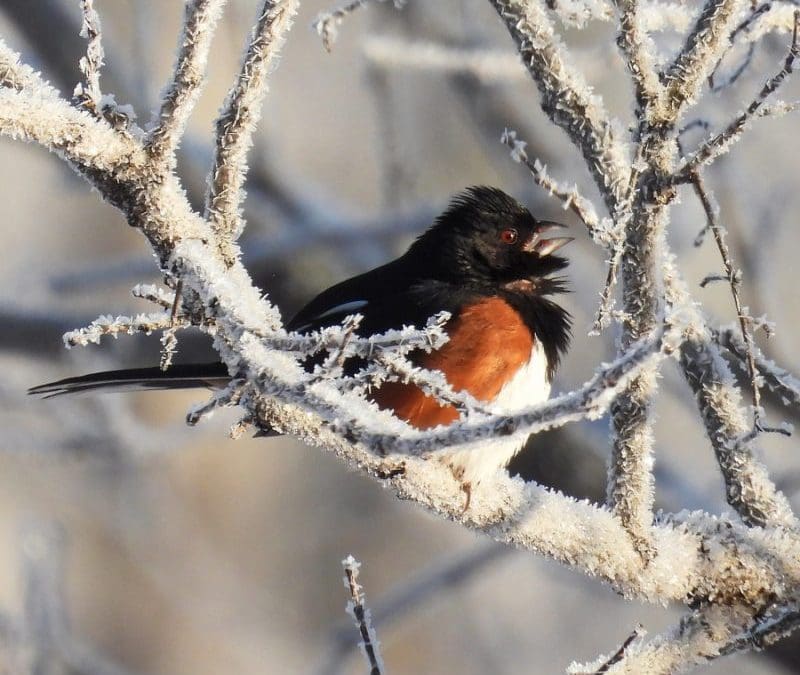 Eastern Towhee by WVExplorer | May 11, 2023 | 0 comments An Eastern Towhee calls out on a frosty winter morning. (Photo courtesy Michael Schramm / USFWS) Submit a Comment Cancel replyYour email address will not be published. Required fields are marked *Comment * Name * Email * Website Save my name, email, and website in this browser for the next time I comment. Δ