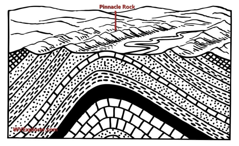 Abbs Valley Anticline by WVExplorer | Jan 21, 2025 Pinnacle Rock outcrops on Black Oak Mountain on the flank of the Abbs Valley anticline.