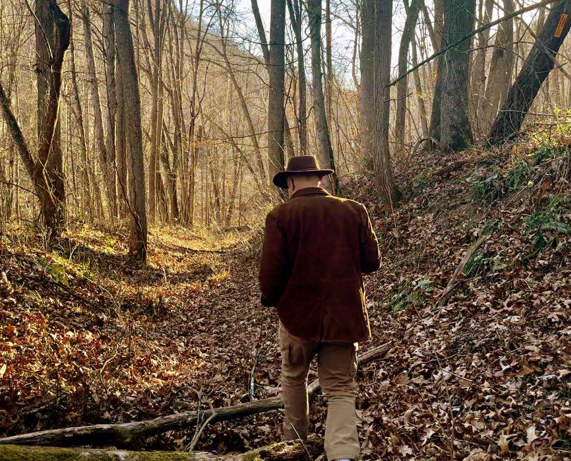 Editor David Sibray follows an old road through the former Lilly townsite in southern West Virginia. (Photo courtesy Yvonne Reed Wilcox)
