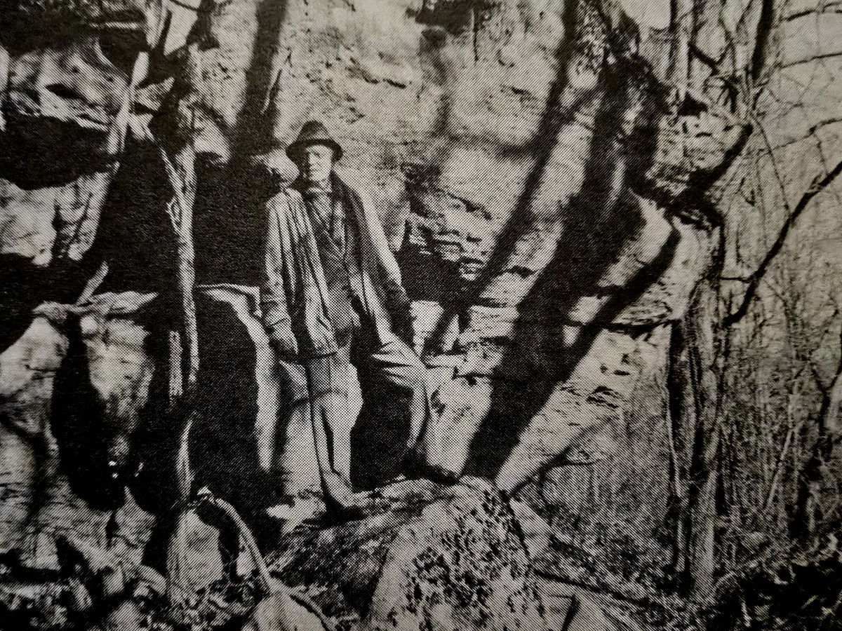Historian William Sanders visits Clay's Rocks near Gravely Point where settler Mitchell Clay camped. (From "A New River Heritage," Vol. 2)