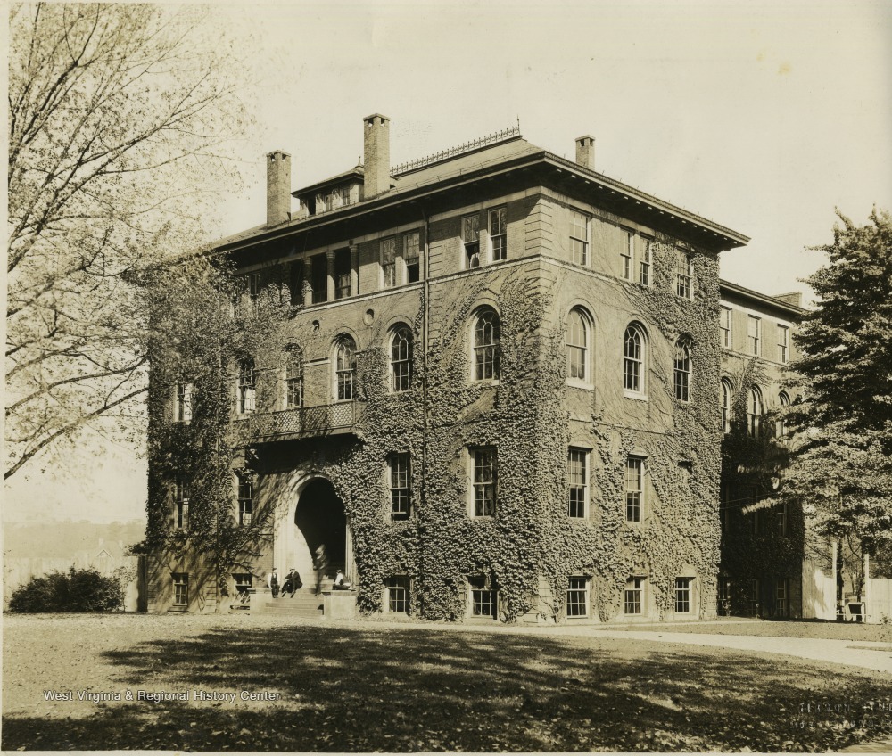 Ivy-covered Chitwood Hall flanks Woodburn Circle on the north. (Photo courtesy WVU)