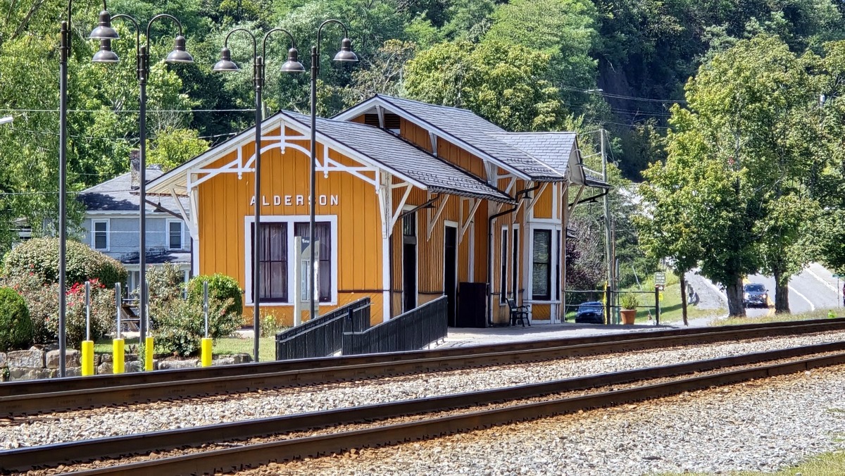 The restored passenger station at Alderson is still served by Amtrak.