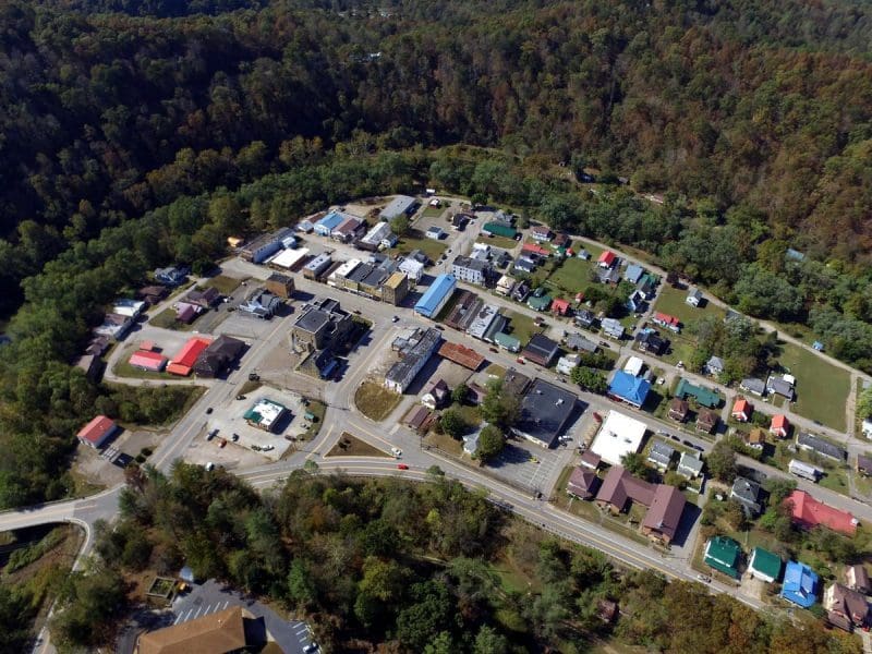 Downtown, Grantsville, West Virginia, occupies a bend in the Little Kanawha River. (Photo courtesy Derek Villers)